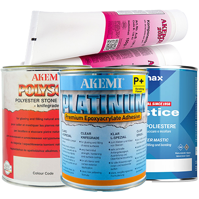 - Chemię do kamienia – oferujemy wysokiej jakości impregnaty do każdego rodzaju kamienia, proszki polerskie i kleje do obróbki, a także środki czyszczące.