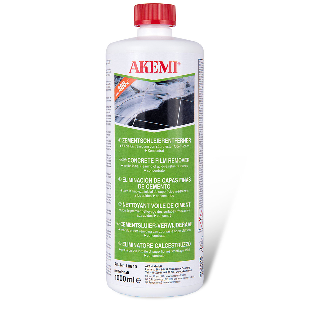 AKEMI Zmywacz Powłok Cementowych zapewnia efektywne usuwanie trudnych osadów i powłok, przywracając powierzchniom czystość i blask.