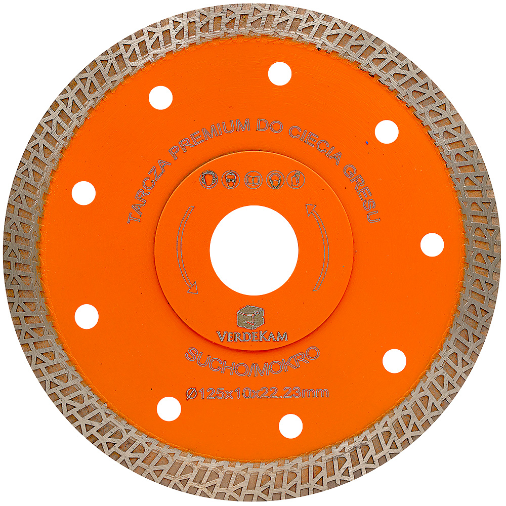 Tarcza diamentowa 125mm firmy VERDEKAM ORG 125mm, linii PRO, nadaje się do szybkiego cięcia gresu, ceramiki, płytek, granitu itp.