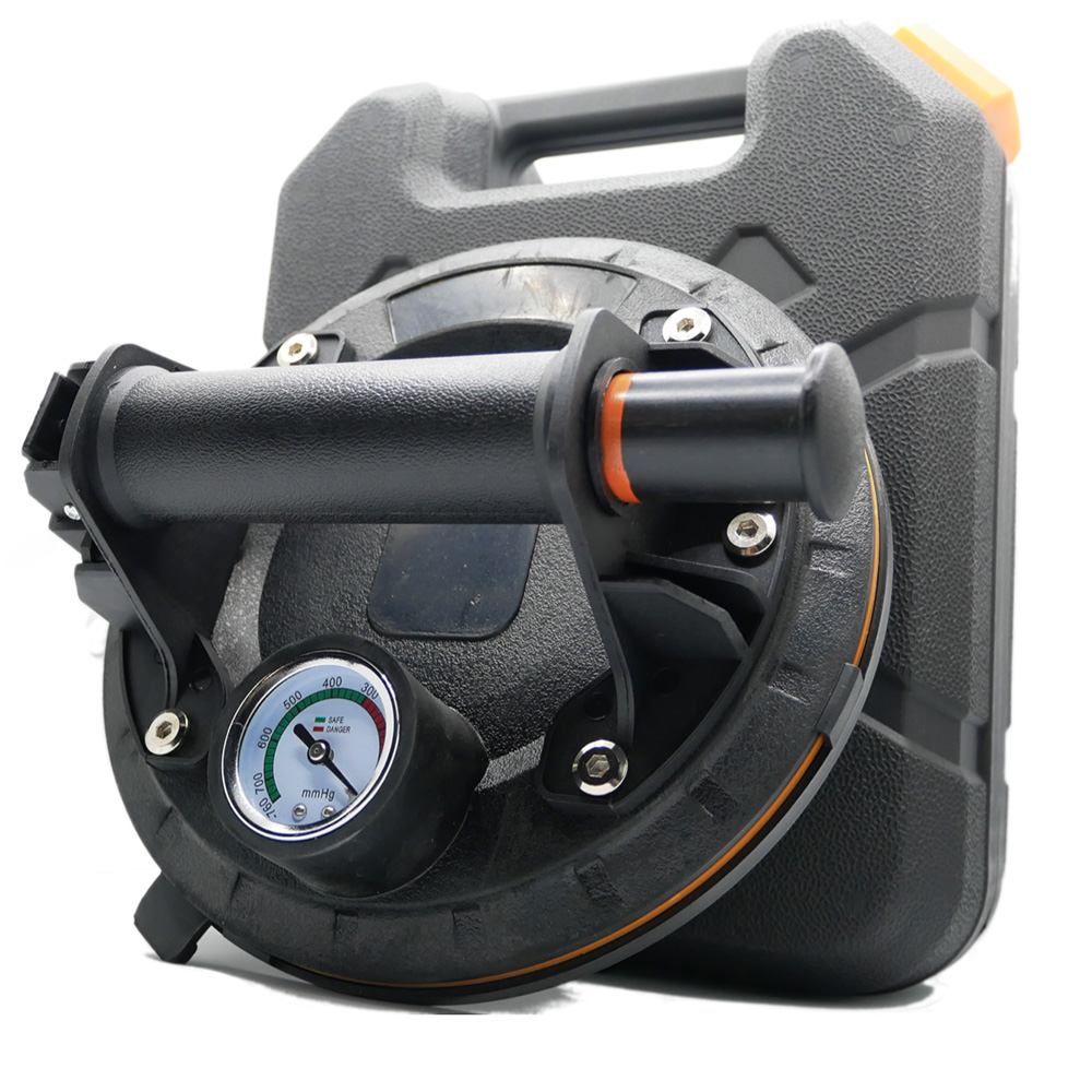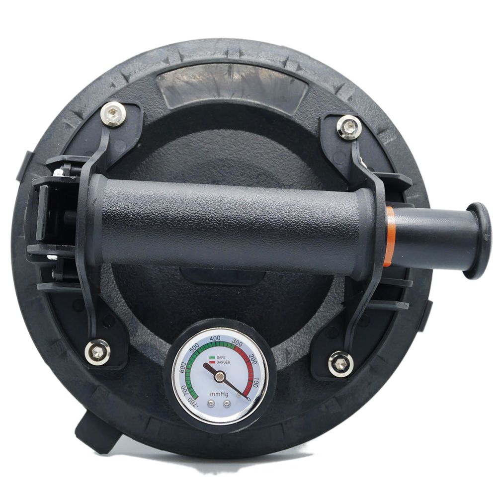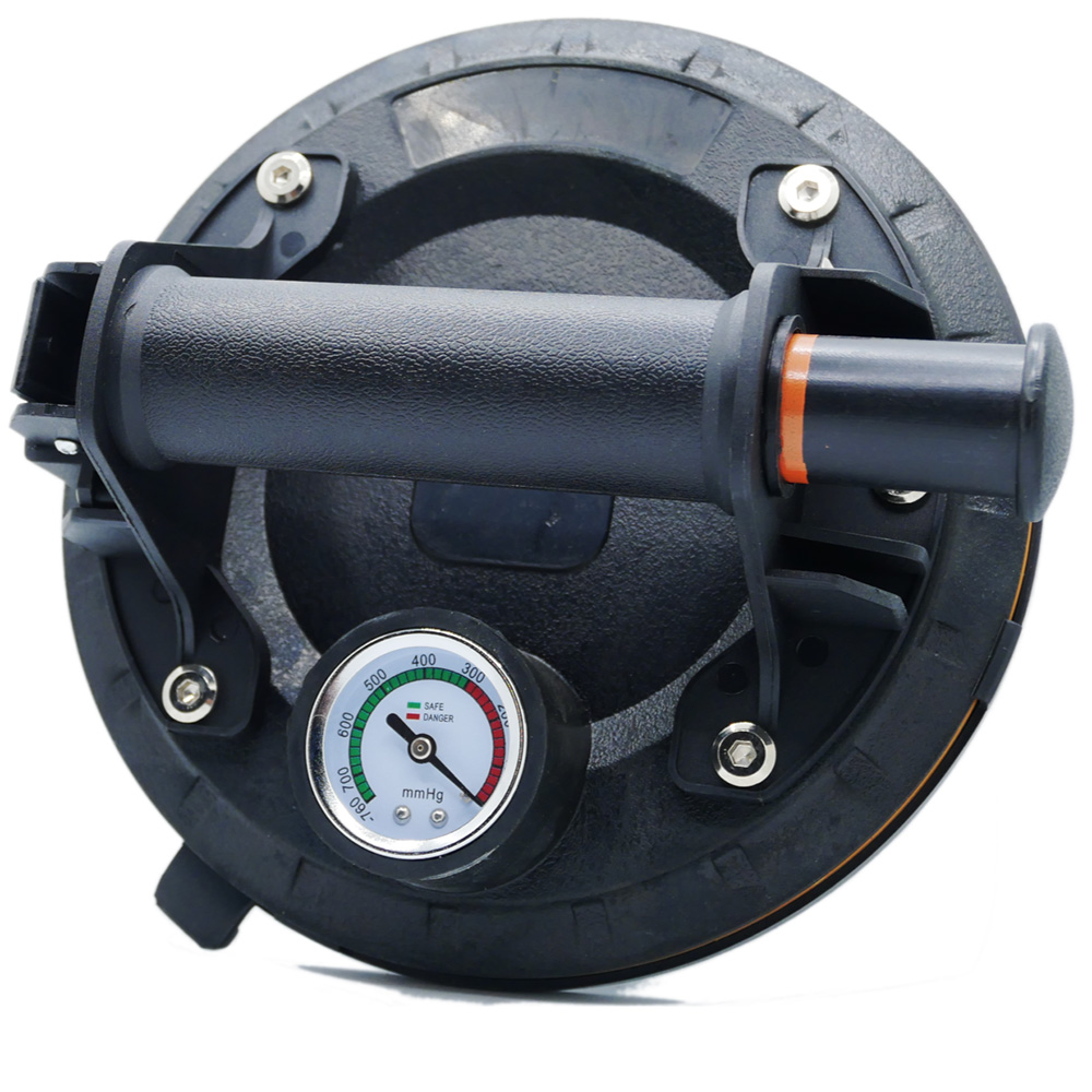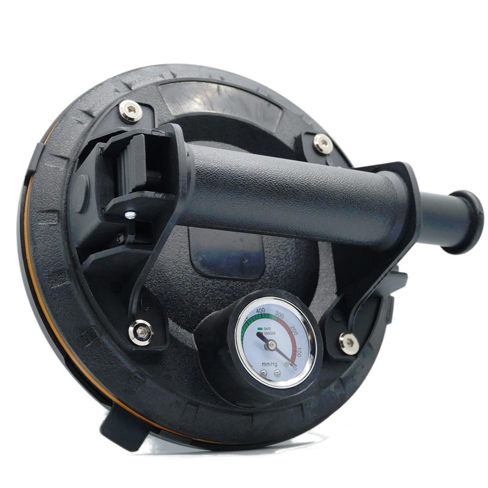 - Manometr: Uchwyt wyposażony jest w manometr o zakresie 0-760 mmHg, który umożliwia monitorowanie ciśnienia, zapewniając odpowiednie przyssanie i minimalizując ryzyko odpadnięcia elementu.